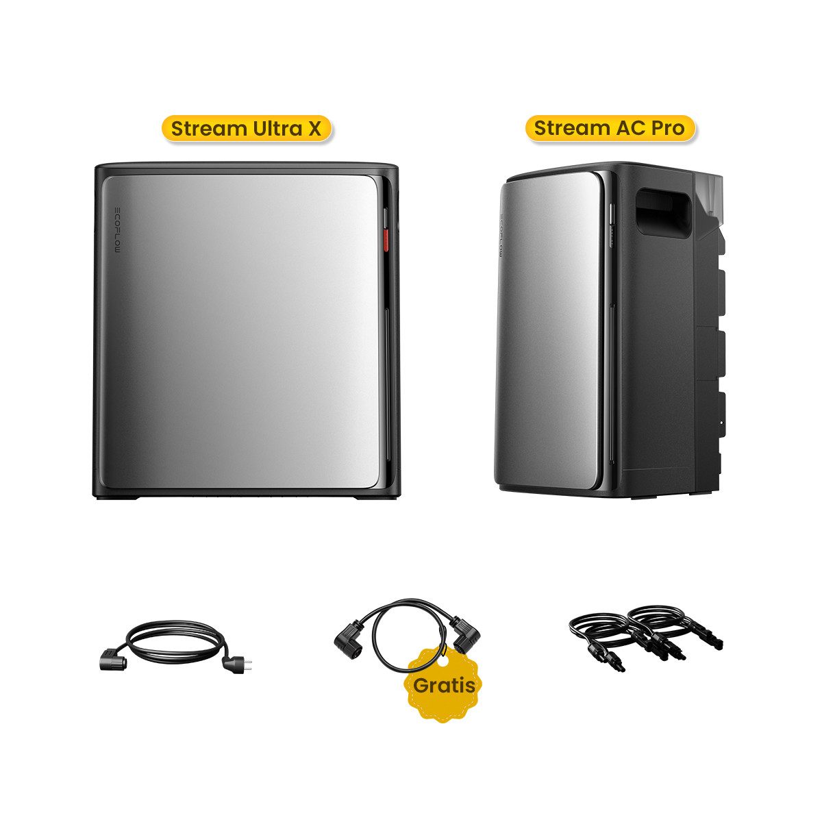 1× EcoFlow STREAM Ultra, 1× EcoFlow STREAM AC Pro, 1× EcoFlow STREAM Parallelkabel