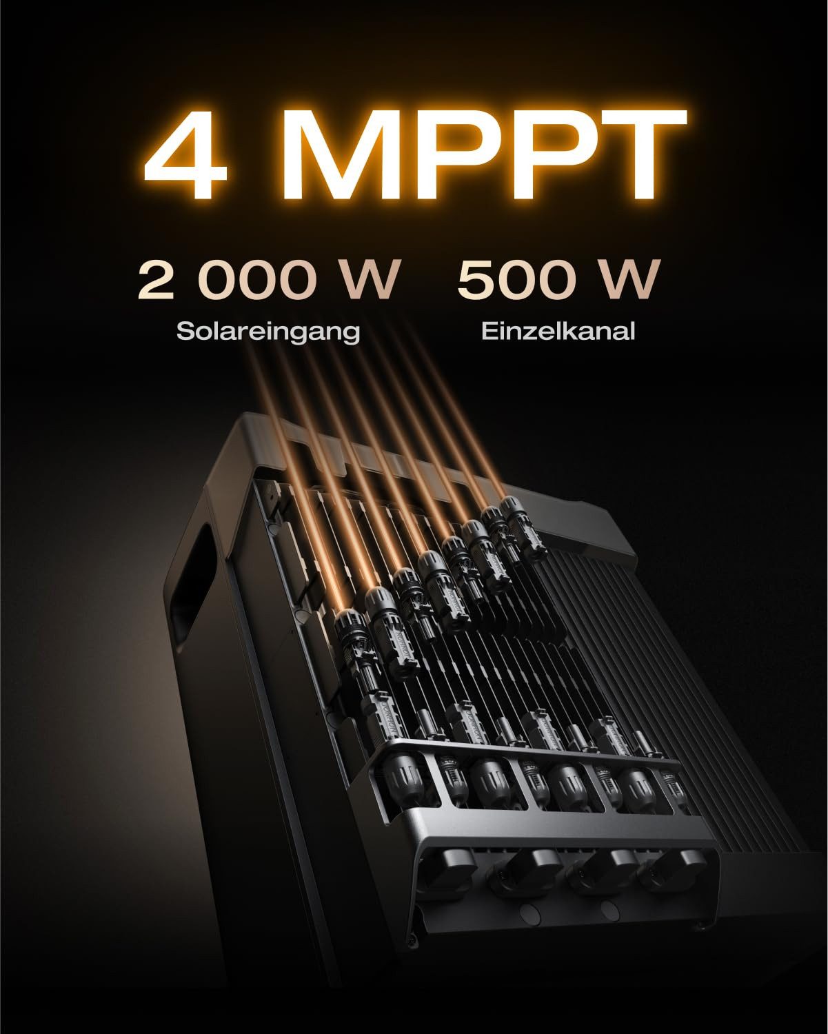 Der STREAM Ultra bietet eine leistungsstarke Solareingangsleistung von 2800 W mit einem 4-MPPT-Design, geeignet für 2000 W Solareingangsleistung plus 800 W über Mikro-Wechselrichter. Zwei Wechselstromausgänge (1200–2300 W) unterstützen 99 % aller Haushaltsgeräte. Dank Wechselstromkopplung können Sie ihn flexibel im Innenbereich platzieren und Geräte wie Kühlschrank, Waschmaschine oder Kaffeemaschine direkt mit Strom versorgen.